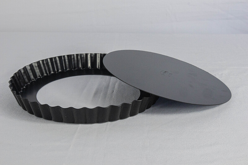 Molde redondo antiadherente para repostería elaborado de aluminio y teflón antiadherente.