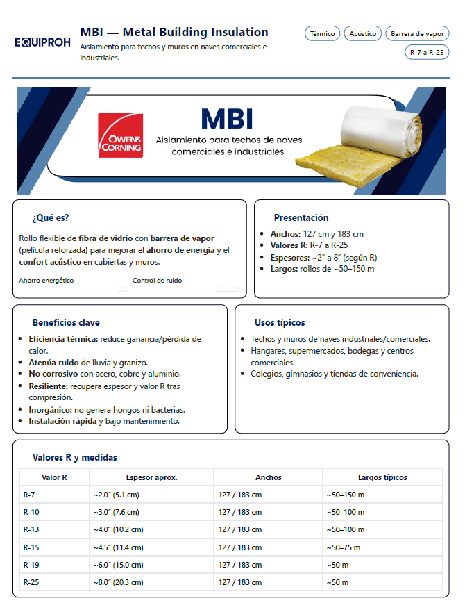 Rollo flexible de aislamiento térmico, fabricado con fibras de vidrio aglutinadas con resinas termofijas recubiertas con una barrera de vapor (vinil satinado o polipropileno reforzado) en una de sus caras. Este aislamiento térmico representa una solución altamente eficiente, segura y económica, ideal para techos muros de naves industriales y comerciales para hangares, supermercados, bodegas, centros comerciales, centros de distribución, colegios, gimnasios, tiendas de conveniencia, etc. Este aislante cuenta con las siguientes medidas: 1.83m X 15.24 m logra cubrir un área de 27.88m cuadrados. Tiene 10.2 cm de espesor Promedio de 90% de absorción acústica.