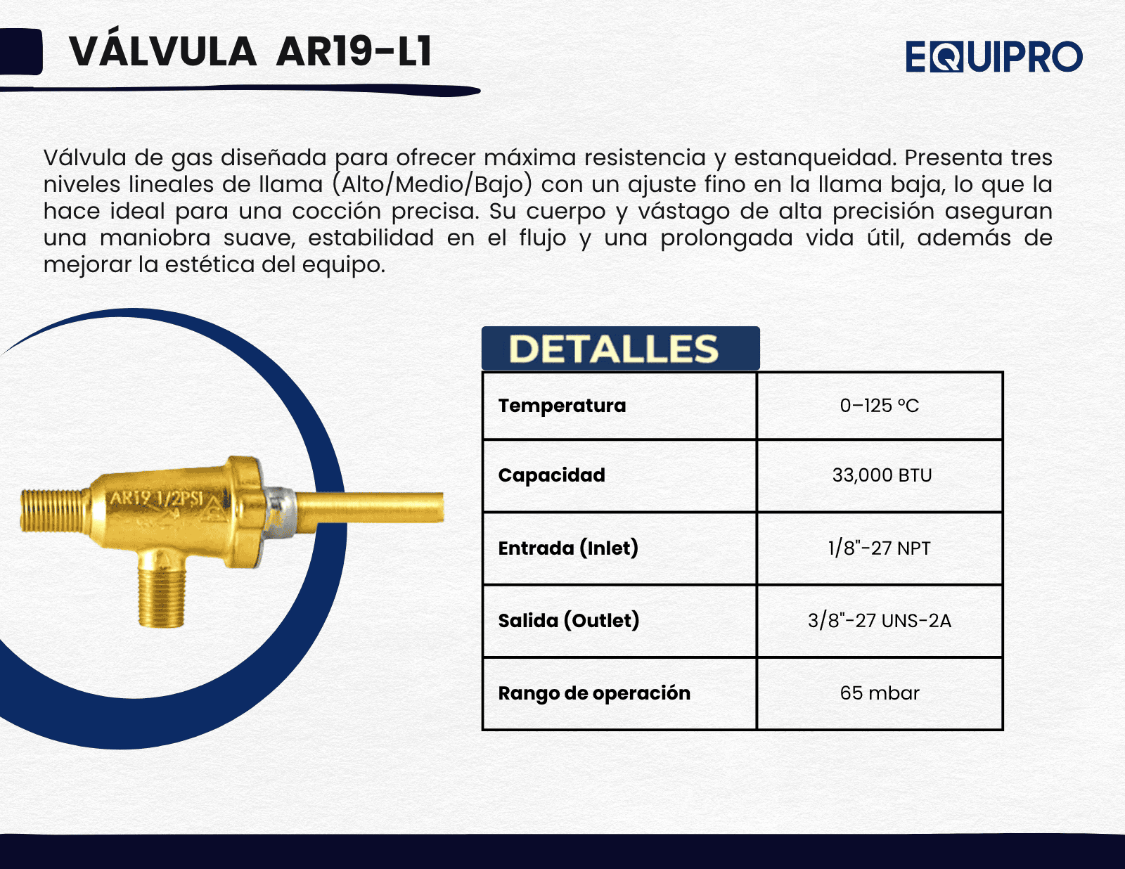 Valvula de paso con sistema de seguridad BTU: 33,000 Inlet: 1/8"" -27NPT Outlet: 3/8"" -27UNS-2A Marca: Alphabrass